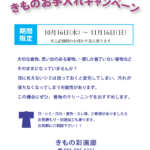 2025年4月14日 / 最終更新日 : 2025年4月14日 辰典横田 17周年 大感謝祭のお知らせ 4/17[木]~22[火] 17周年 大感謝祭 日時:2024.04.17[木] ~ 22[火] 「きもの彩画廊」は、おかげさまで17周年を迎えることができました。 そこで、日頃のご愛顧に感謝して「大感謝祭」を開催いたします。 皆様お誘い合わせの上 […]